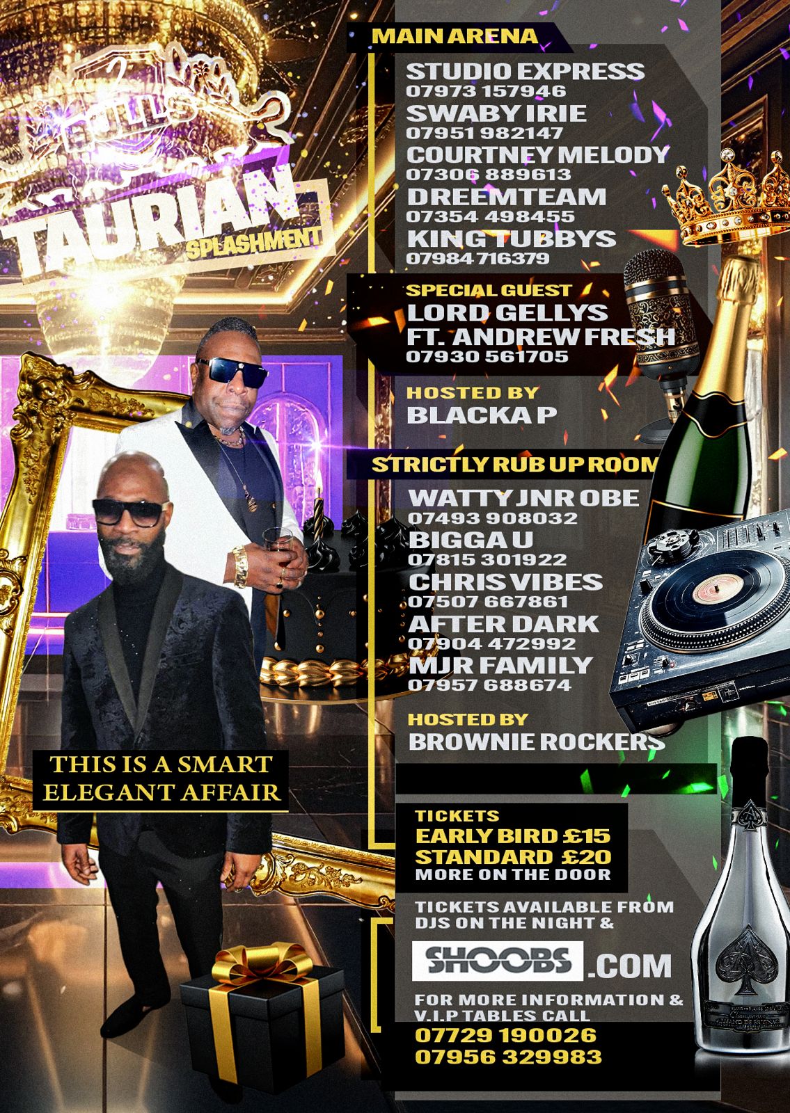 MR MIGHTY & DENNIS G DOUBLE CELEBRATION THE OFFICIAL TAUREAN PARTY SMART DRESS IS A MUST LONDONS NUMBER ONE STREET SOUNDS AND DJS PLAYING REGGAE - DANCEHALL - AFRO BEATS - SOUL -NEO - RARE GR...